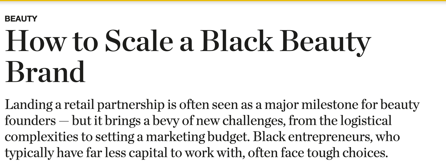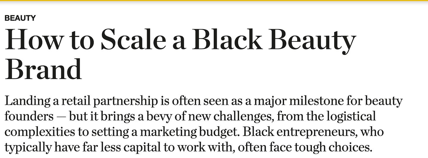 I really like this, and as someone who works in PR, I have seen many a deck leading with “black-owned” and how to get white retailers to understand why you’re black-owned. If the product is great, you don’t need to refer to your blackness to sell it. Marketing/PR should be based on the effectiveness of the product and USP, and then translate that to your target audience. Very great read 👏🏾👏🏾