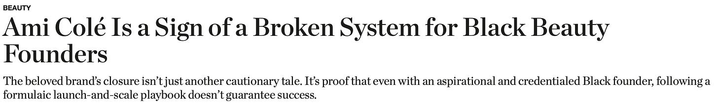 Recently, Slutty Founder wrote a piece about the Fifteen Percent Pledge — essentially arguing that Aurora James profits from Black women’s dreams in beauty while showcasing Beyoncé’s mother as a hard worker. Why are we showcasing Beyonce’s Mom when we have hundreds of founders who are not known and working hard to scale?? I digress.