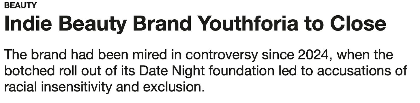 One was Ami Colé — a Black-owned beauty brand celebrated for its skin-focused, melanin-first vision. The other was Youthforia — an indie brand that couldn’t break through the glass ceiling despite good product and decent buzz until the scandal.